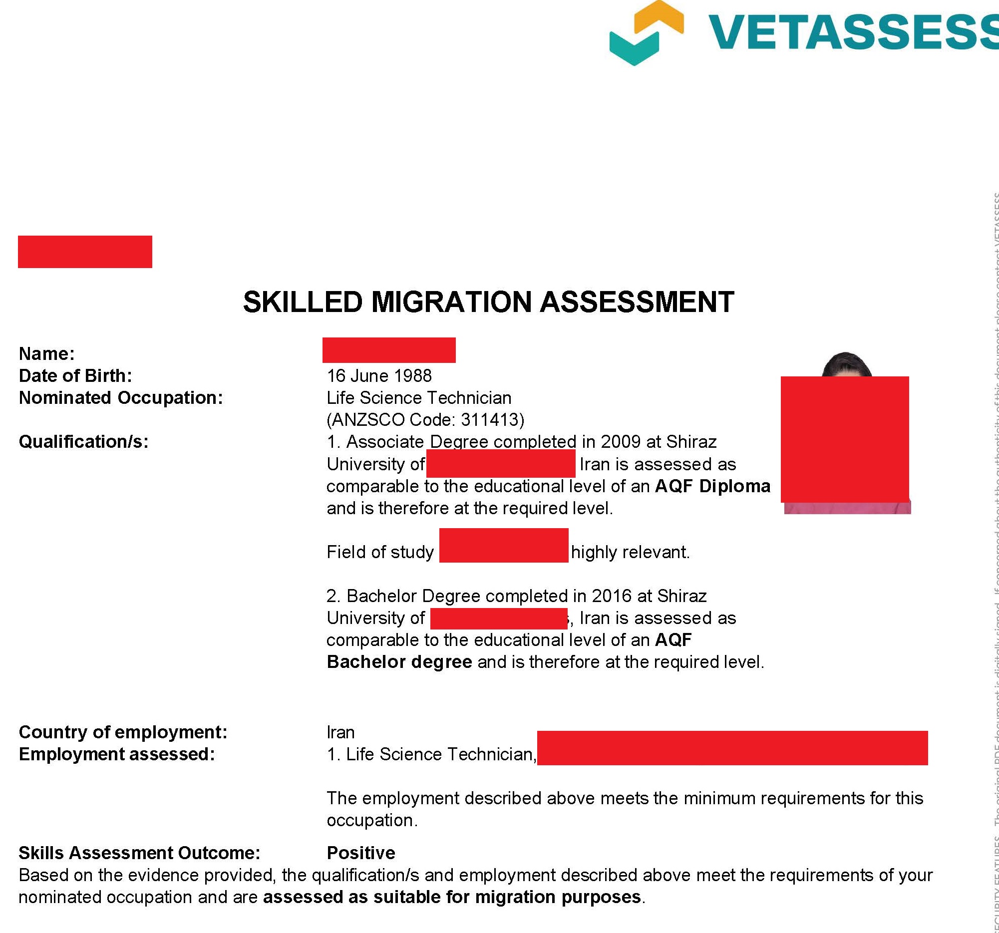 در ادامه میتوانید تعدادی از اسسمنتهای مثبت کد شغلی تکنسین علوم زیستی ( Life Science Technician ) که توسط موسسه مهاجرتی متدویزا دریافت شده مشاهده نمایید.