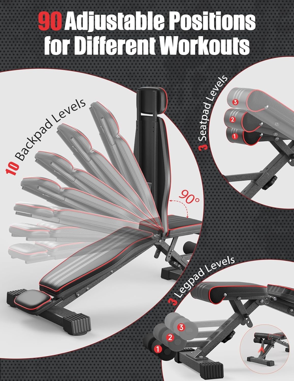 OUNUO Adjustable Weight Bench with Headrest - 660LBS Heavy Duty Foldable Workout Bench for Home Gym, Full Body Training & Bench Press