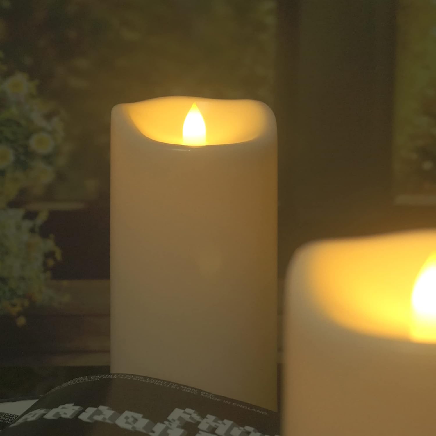 CANDLE CHOICE’s waterproof outdoor pillars candles are made of high-quality plastic and designed for outside use. Unlike real wax candles which are for indoor use only, resin candles are for both outdoor and indoor use. Outdoor candles are waterproof so that they can withstand rains and snows. Plastic candles never melt in hot weather when they are used outside. Specifications 1.Material: plastic. 2.Shape: pillar. 3.Size: 4 inches in diameter and 8 inches in height. 4.Appearance color: cream white. 5.Light color: warm white. 6.Package quantity: 2. 7.Battery required: each candle requires 3 AA batteries (not included).