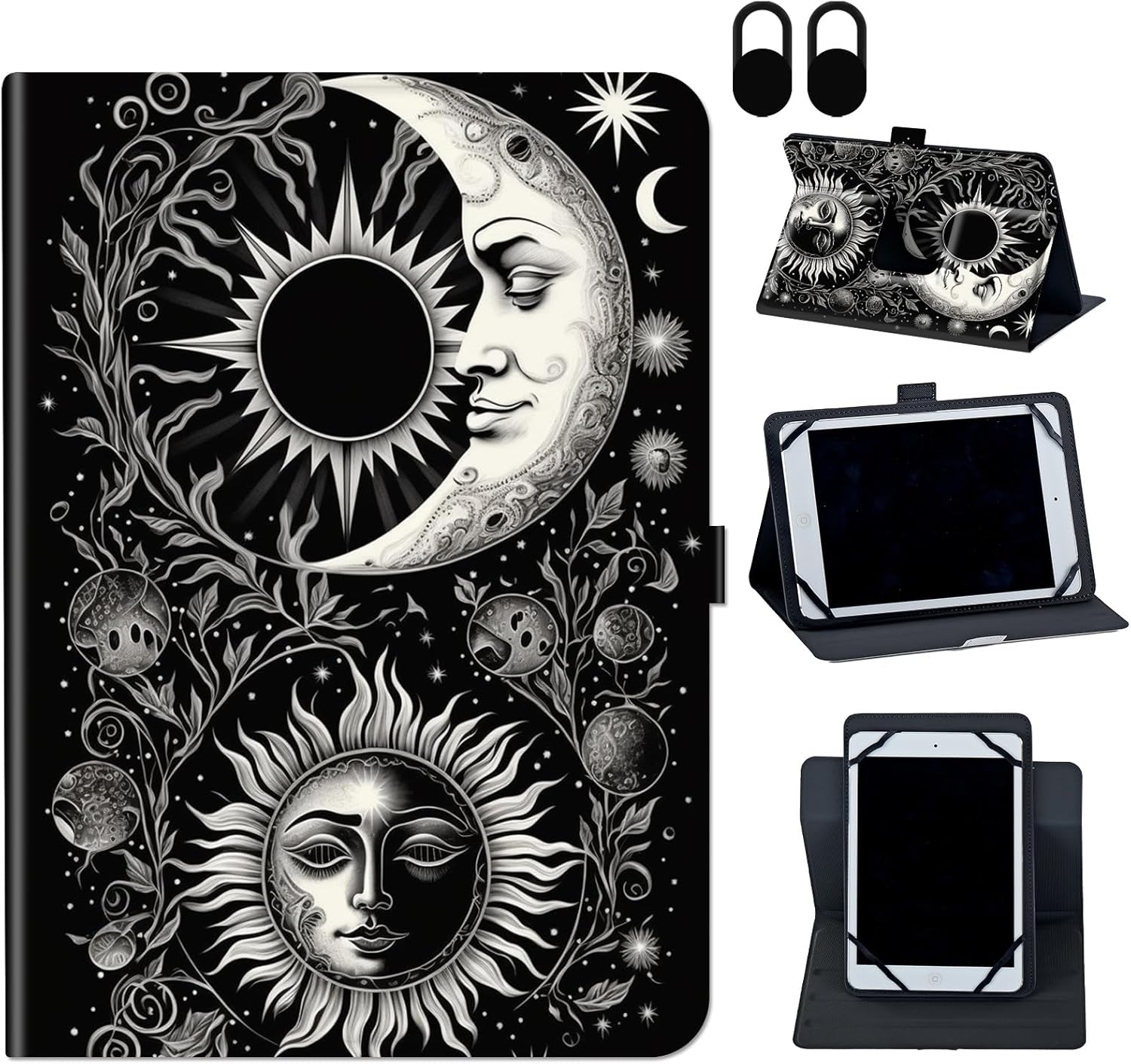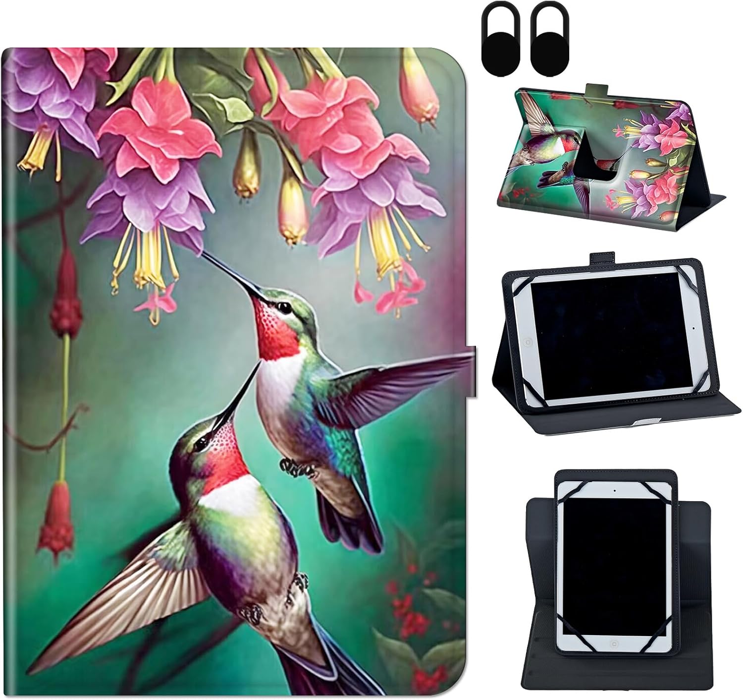 ✿Compatibility : All 9 - 10.5 inch tablets. FIT for Apple iPad Air 1/ iPad Air2/ iPad 2017 2018 9.7/iPad 568/ iPad7 10.2 2019/iPad 8 2020/iPad 9 10.2 2021 /TECLAST T40 Plus / T40 Pro 10.4 inch Tablet; FIT for Samsung Galaxy Tab E 9.6" 2015(SM-T560/T561/T565/T567) /Tab A 10.1 (2016)SM-T580/T585/T587/Tab A 10.1 (2019) SM-T510/T515/T517/Tab A7 Case 10.4 Inch (SM-T500 / T505/T507)/Tab S5e 10.5 Inch 2019 (SM-T720/T725/T727) /Samsung Galaxy Tab A8 10.5 inch 2022 Model (SM-X200/X205/X207)/Tab S8 case 2022/Samsung Galaxy Tab S7 11 inch 2020 (Model SM-T870/T875/T878)/Samsung Galaxy Tab S6 FIT for Amazon kindle flre HD10 2015/2017/2019/HD10 2019 (10.1")/HD10 2021; And Fit for other 9-10.5 inch tablet case. There are many patterns to choose from and the design is classic and fashionable 1: Brand New and High Quality Leather Material,Exclusively Designed for all 9.0 inch to 10.5 inch Tablet. 2:Multi-Angle Viewing Stand: The case provides 3-stripes allow you to adjust your tablet to multiple stable angles.Able to set up multiple horizontal stand angles for watching movie or typing. 3:Multi-Functions: The case is equipped with 4 clasps to well fix and protect your tablet PC from everyday tear and wear without affecting the normal use.Magnetic button closure design ensures cover securely closed. 4:Durable Synthetic Leather: Made of synthetic leather material and plastic material, provides full body protection against scratches, shocks, fingerprints and dust. 5:Lightweight, Portable and Easy to Access and Use.Warm Reminder: Don't support auto sleep/wake for any tablets,No Back Camera Opening. Please Note: Colors shown in pictures may slightly differ from the actual product due to lighting and color settings. Package Content: 1 x PU Leather Card Slots Protective Case For 9.0-10.5 inch Tablet Case only, Tablet not included.