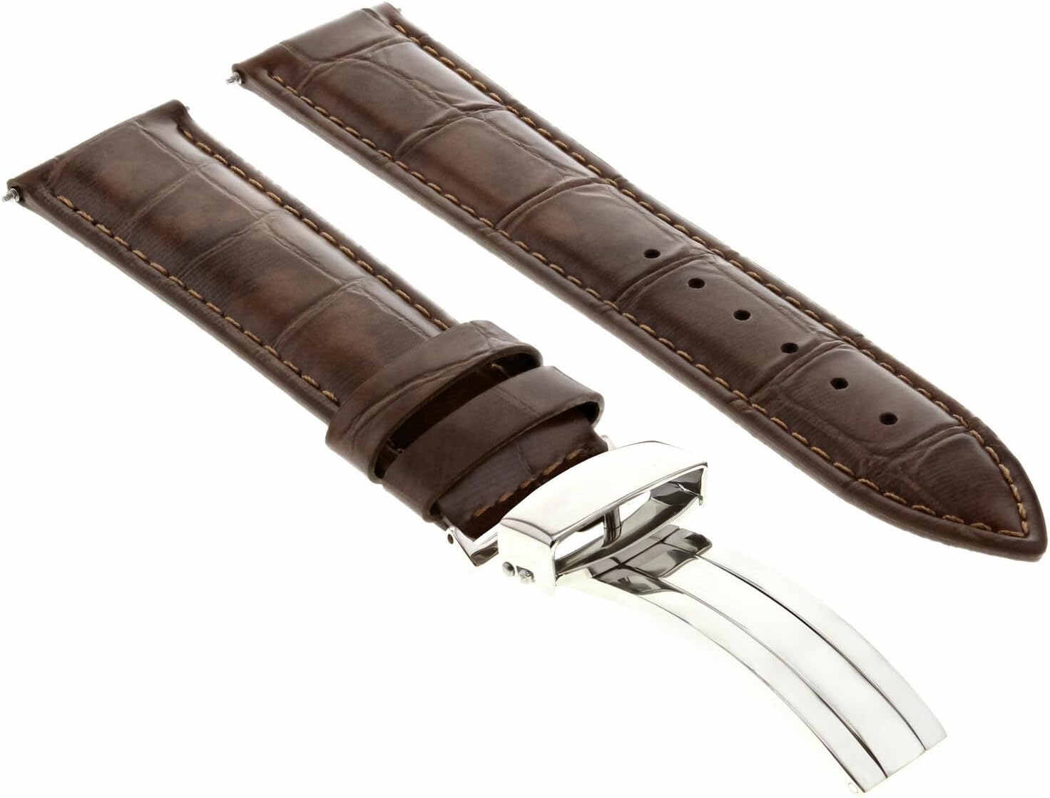 This is a brand new replacement strap made of premium Italian Real Leather. It comes with a butterfly-style deployment clasp.Compatible With Rolex Midsize, Date, Datejust, President, Submariner, Seadweller, Deepsea, GMT, GMT II, Explorer, Daytona, Yachtmaster, AirkingWatches with lug widths of 17mm, 18mm, 19mm, 20mm, 21mm, 22mm, 23mm, 24mmFits wrists up to 8 inchesSpecifications:Material: Premium Italian Real LeatherPadding: 4mm at Lug End, 2mm at Buckle EndLining: Nubuck Waterproof Leather (Sweat Resistant)Clasp: 316L Stainless Steel Butterfly Deployment ClaspLength:Long Part: 115mm (4.6 inches)Short Part: 75mm (3 inches)Available Sizes:17mm Lug Width with 16mm Buckle Width (17/16mm Strap)18mm Lug Width with 16mm Buckle Width (18/16mm Strap)19mm Lug Width with 18mm Buckle Width (19/18mm Strap)20mm Lug Width with 18mm Buckle Width (20/18mm Strap)21mm Lug Width with 18mm Buckle Width (21/18mm Strap)22mm Lug Width with 20mm Buckle Width (22/20mm Strap)23mm Lug Width with 20mm Buckle Width (23/20mm Strap)24mm Lug Width with 22mm Buckle Width (24/22mm Strap)Available Strap Colors:BlackBlueDark BrownLight BrownDark BlueGreyOrangeTanAvailable Buckle Colors:SilverGoldPackage Includes:1 Set of Real Leather Strap1 Deployment Clasp (Installed)2 Spring bars includedEnsure the strap matches your watch model and lug width before purchase.
