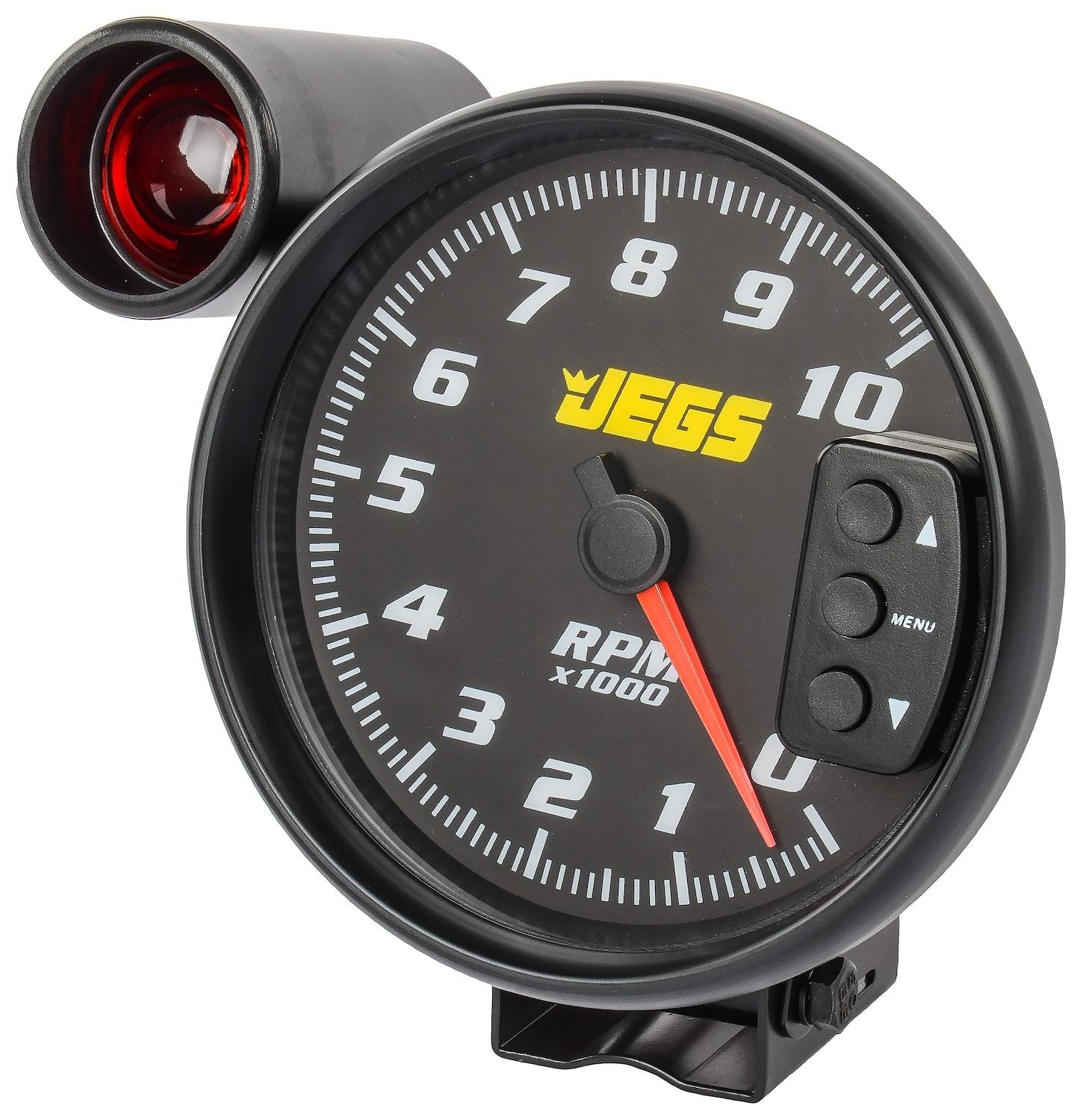 5 in. Tachometer0-10,000 RPMElectricalBlack HousingBlack FaceBlack BezelSuper-Bright LED Shift LightOne-Touch Peak RPM RecallSold Individually JEGS 41263 5 in. Performance Tachometer sets the new standard for quality and value. We have packed all of the latest technology into this tachometer at an unbelievable price. The tachometer is available in black, silver, and white faces and black or silver anodized aluminum bezels. For matching gauges we recommend our JEGS 2 1/16 in. or 2 5/8 in. diameter models.Features:Works with 1 to 12 cylinder enginesPedestal mount baseWorks with 0.5, 1, 2, 3, 4, 5, and 6 PPR signal inputsTwo signal input options: Green wire connects to the ignition coil, Purple wire connects to a clean tachometer signal on ignition box, ECU or tach adapterHigh-speed full sweep stepper motor movementAmber or white through-the-dial LED lightingIlluminated pointerPointer return to zero featureLow profile case (only 2 in. deep)Advanced circuitry & vibration-resistant componentsProgrammable (6) LED 1.5 in. super-bright shift light