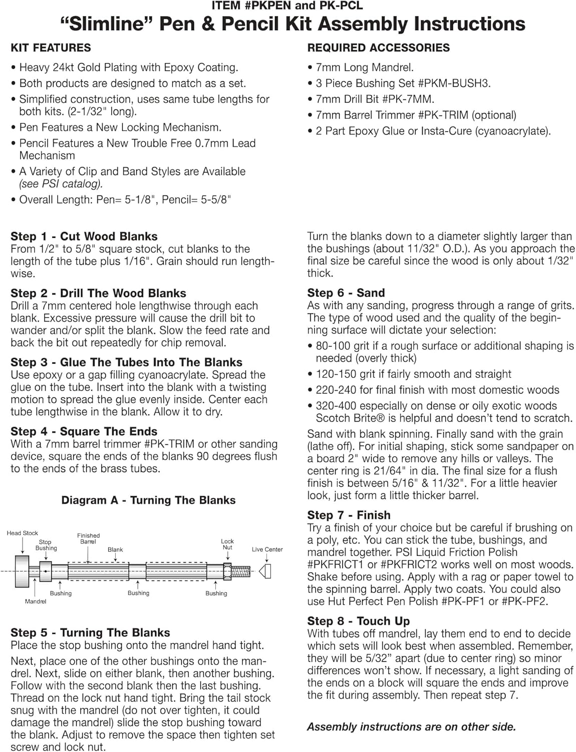 This is a woodturning project kit. Hardware only. A lathe is needed to make into finished pens. Blanks, bushing set, drill bit, and all other turning tools are not included. Includes (10) PKSLX242 24kt Gold Chic-Line Twist Ballpoint Pen Woodturning Project Kits. Features a 7mm dual tube design, twist mechanism, and a Cross style ballpoint refill. Uses bushing set PKM-BUSH3. Minimum blank size needed to turn is 5/8" x 5/8" x 4-1/4". The slim Chic-Line twist pen kit features a classic scrolling fretwork design on the pen end and band. The pen clip incorporates a cool rotating wheel. Chic-Line Twist Ballpoint Pen Woodturning Project Kits are available in Chrome (PKSLXCH2), 24kt Gold (PKSLX242), Rose Gold (PKSLXRG2), Gun Metal (PKSLXGM2), and the Variety Pack (PKSLXSS2).