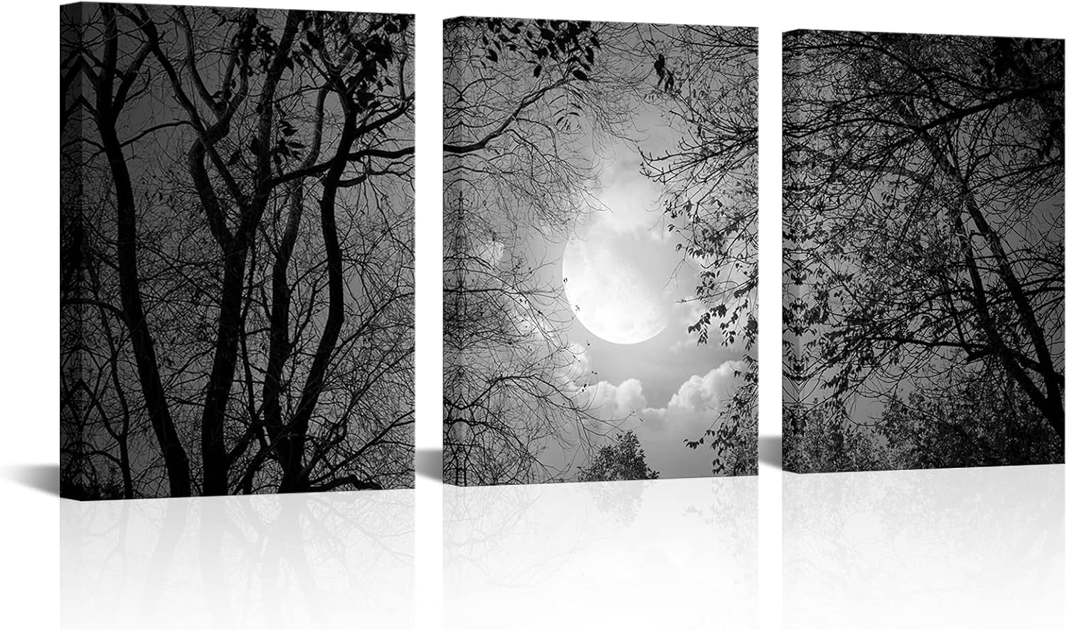 | Pattern | Nature (Trees, Full Moon) - Black And White |