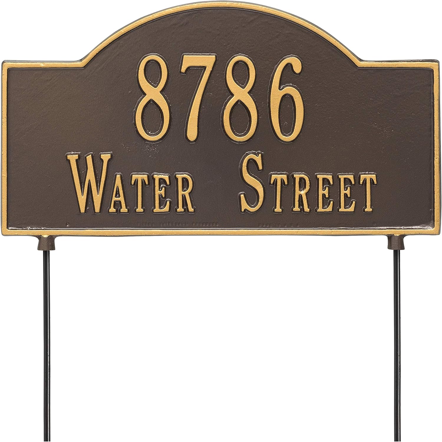 Personalization is easy! After your order our Friendly, U.S. based representatives will send you a design layout for your approval. Give home an affordable makeover. These plaques combine popular architectural styling with large numbers for maximum visibility. Made from durable aluminum with an all-weather powder coated finish. It is totally rust free. This plaque is easy to order and fast turnaround for this distinctive cast aluminum personalized house numbers plaque. This plaque is made in the USA.